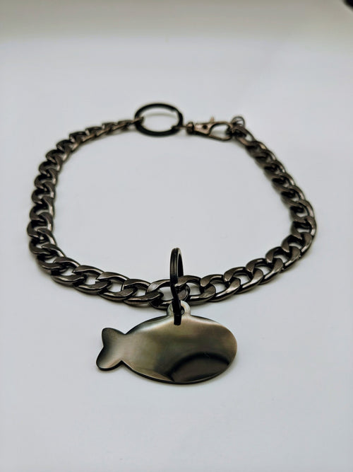 Custom Engraved Stainless Steel Dog Collar β Black Chain and Tag -